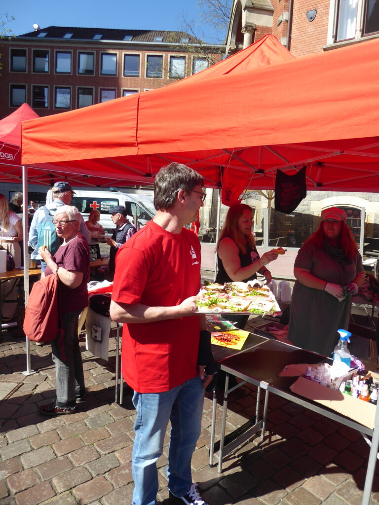 Brunch des DGB statt. An Infoständen der Einzelgewerkschaften, Parteien und sozialen